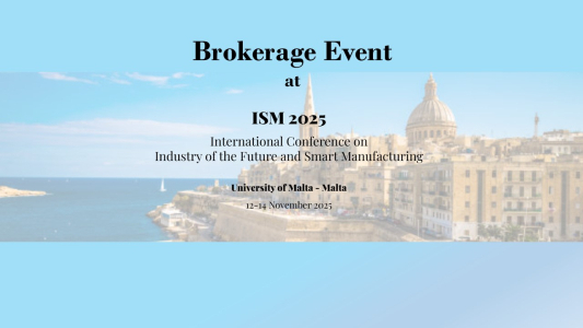 Ez a matchmaking esemény 2025. november 12–14. között kerül megrendezésre Vallettában, az Industry of the Future and Smart Manufacturing (ISM) nemzetközi konferencia keretében. Célja, hogy vállalatokat, szervezeteket és kutatóintézeteket vonzzon az Ipar 4.0 széles területéről, akik üzleti vagy projektalapú együttműködési partnereket keresnek.